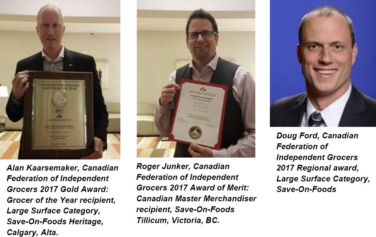 October 30, 2017 – Toronto, Ont.) Several Save-On-Foods store teams received special recognition at the 2017 Grocery Innovations Canada Conference in Toronto – Canada’s premier grocery and specialty food show.